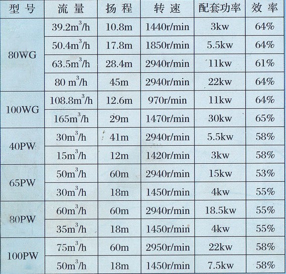 污水泵适用于抽送80℃以下的污水,粪便以及带有纤维、纸屑无腐蚀的固体悬浮物的液体之用。其主要型号有:PW、WG和其它的浆泵相比主要有以下优点:1、运行稳定;2、不易堵塞;3、性能可靠;4、结构简单,检修方便.适用行业:城市、工厂、医院、环保、化学工业等
