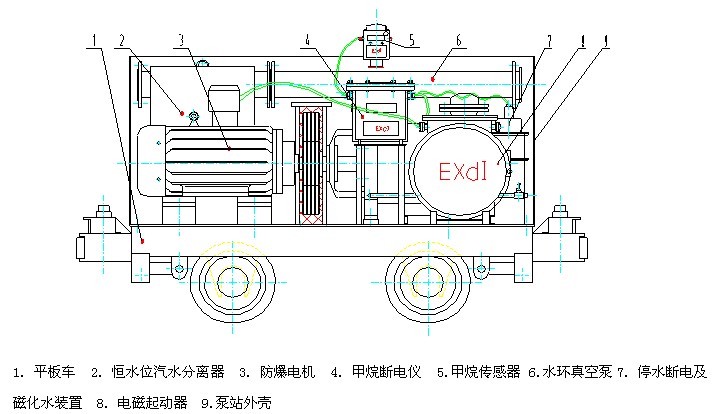 矿用移动式瓦斯抽放泵站的所有设施全部安装在一个平板矿车上,不需要重新解体装配,但在使用时需要注意以下几点: