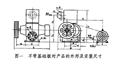本机系由电机通过三角皮带轮带动主动转子转动,并通过同步齿轮带动从动齿轮驱动从动转子转动,两转子互不接触,且保持0.4mm左右的间隙量。转子与泵体及端盖间分别保持0.25mm左右的间隙量。运转过程中,在泵腔下部,由于两转子的不断分离,造成容积扩张,在上部由于两转子的不断接进造成容积的收缩,从而完成吸、排气体的作用,并在吸入侧造成真空,而排气侧与大气导通,接近大气压。