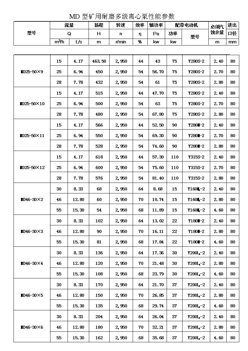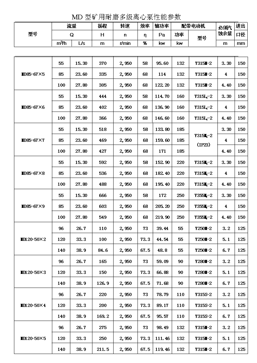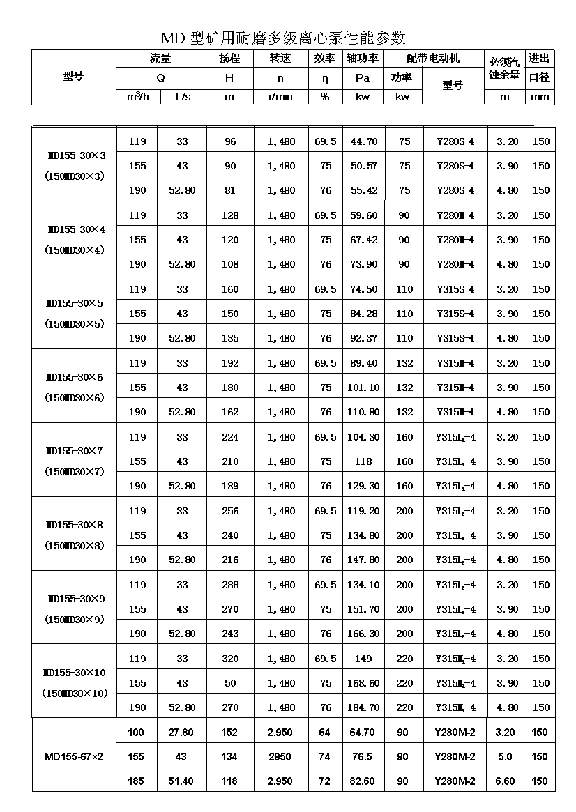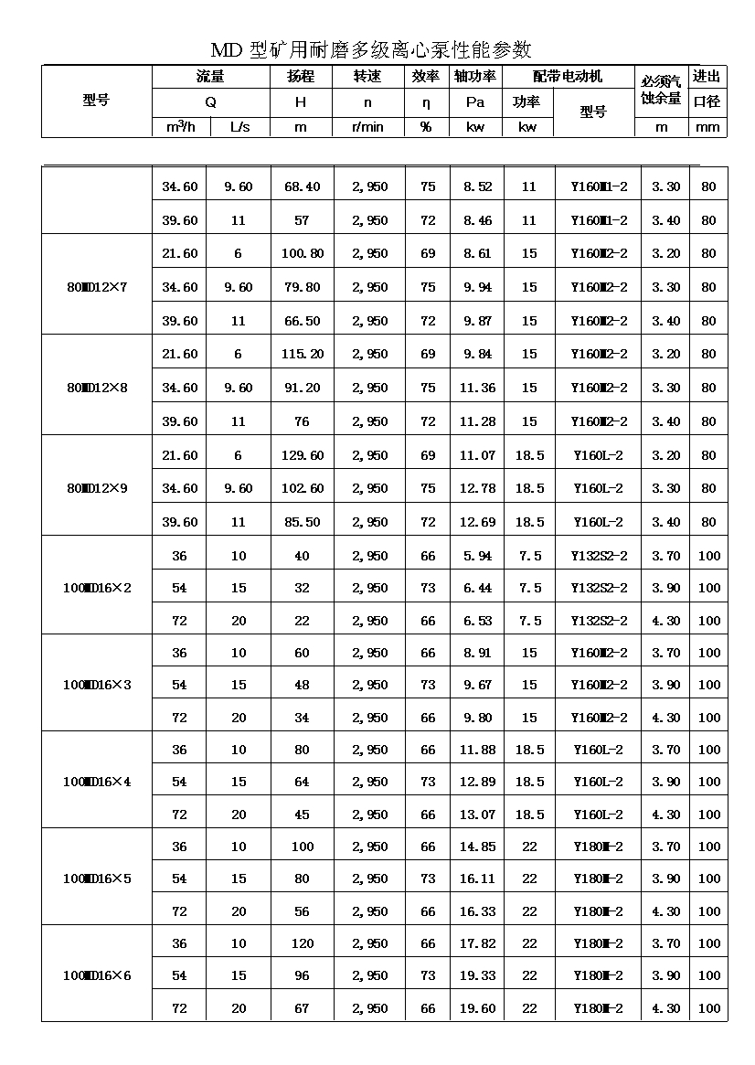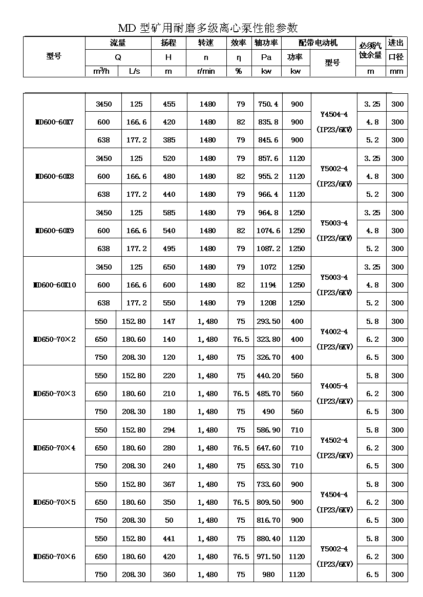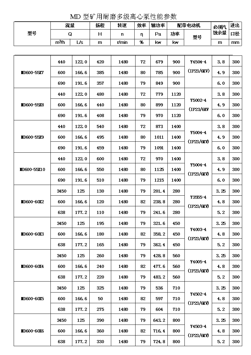 MD型耐磨多级离心泵,是我公司在D型单吸多级清水离心泵的基础上,改造设计的一种耐磨多级离心泵。MD型耐磨多级离心泵,高效节能,耐磨可靠,寿命长, 特别适用于矿山排水,抽送固体颗粒含量不大于1.5%(颗粒直径小于0.5毫米)的矿井水及其他类似液体,液体温度不高于80度。