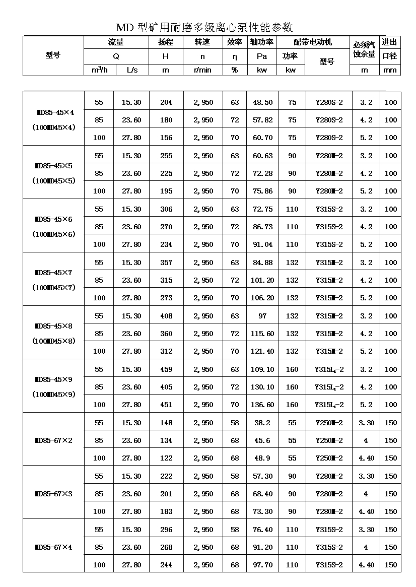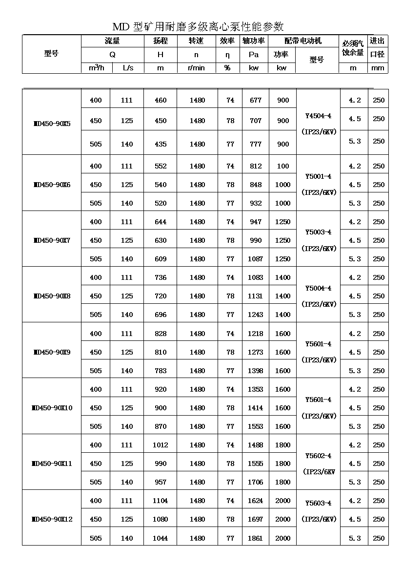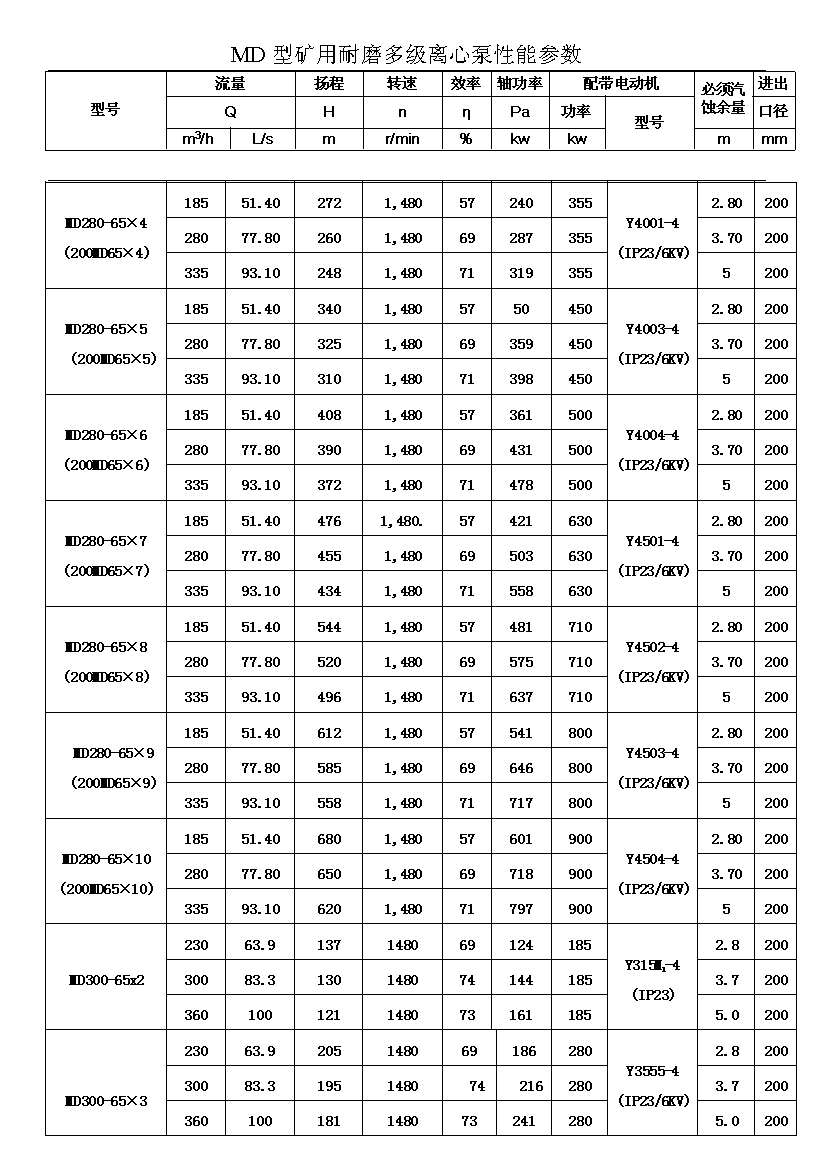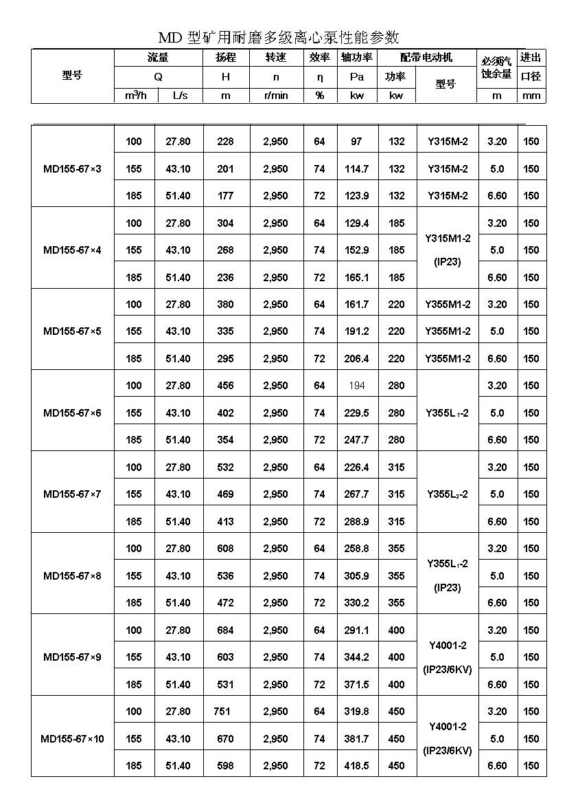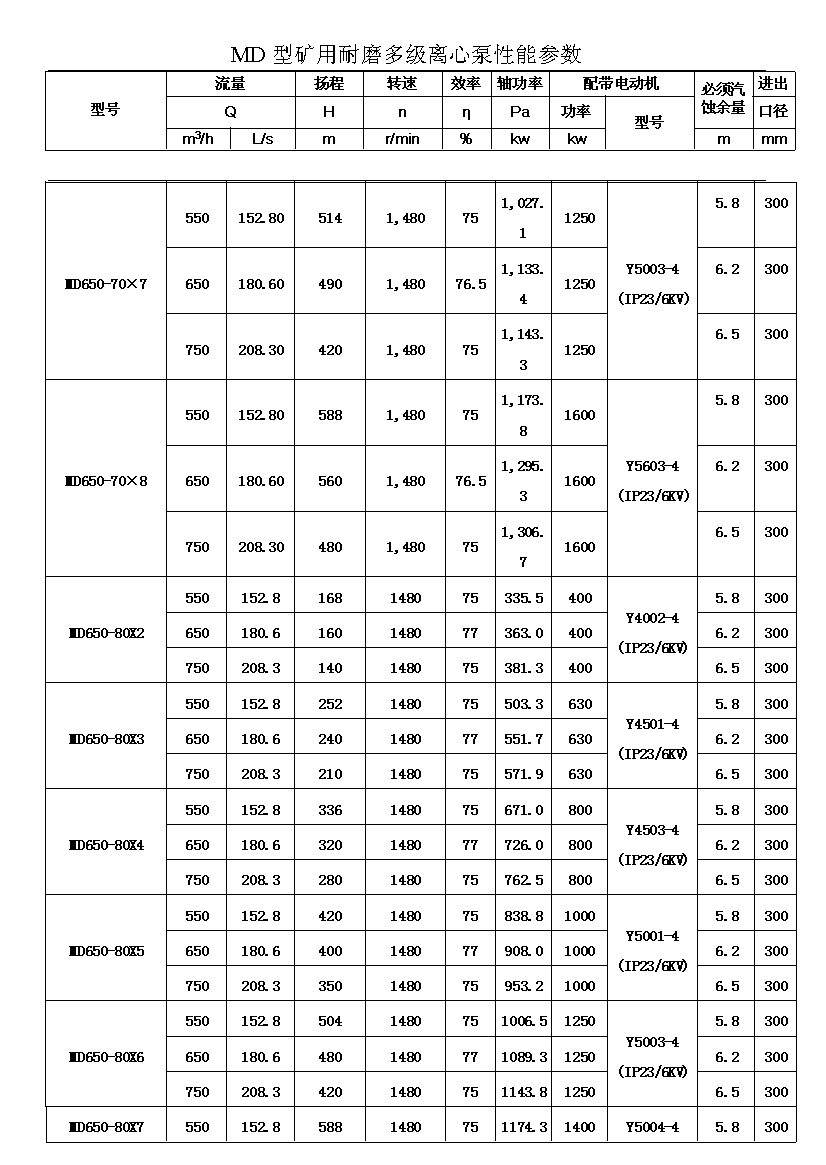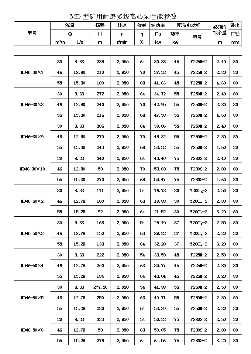MD型耐磨多级离心泵,是我公司在D型单吸多级清水离心泵的基础上,改造设计的一种耐磨多级离心泵。MD型耐磨多级离心泵,高效节能,耐磨可靠,寿命长, 特别适用于矿山排水,抽送固体颗粒含量不大于1.5%(颗粒直径小于0.5毫米)的矿井水及其他类似液体,液体温度不高于80度。