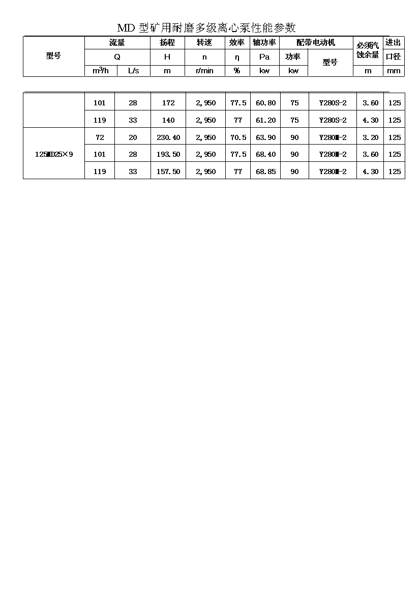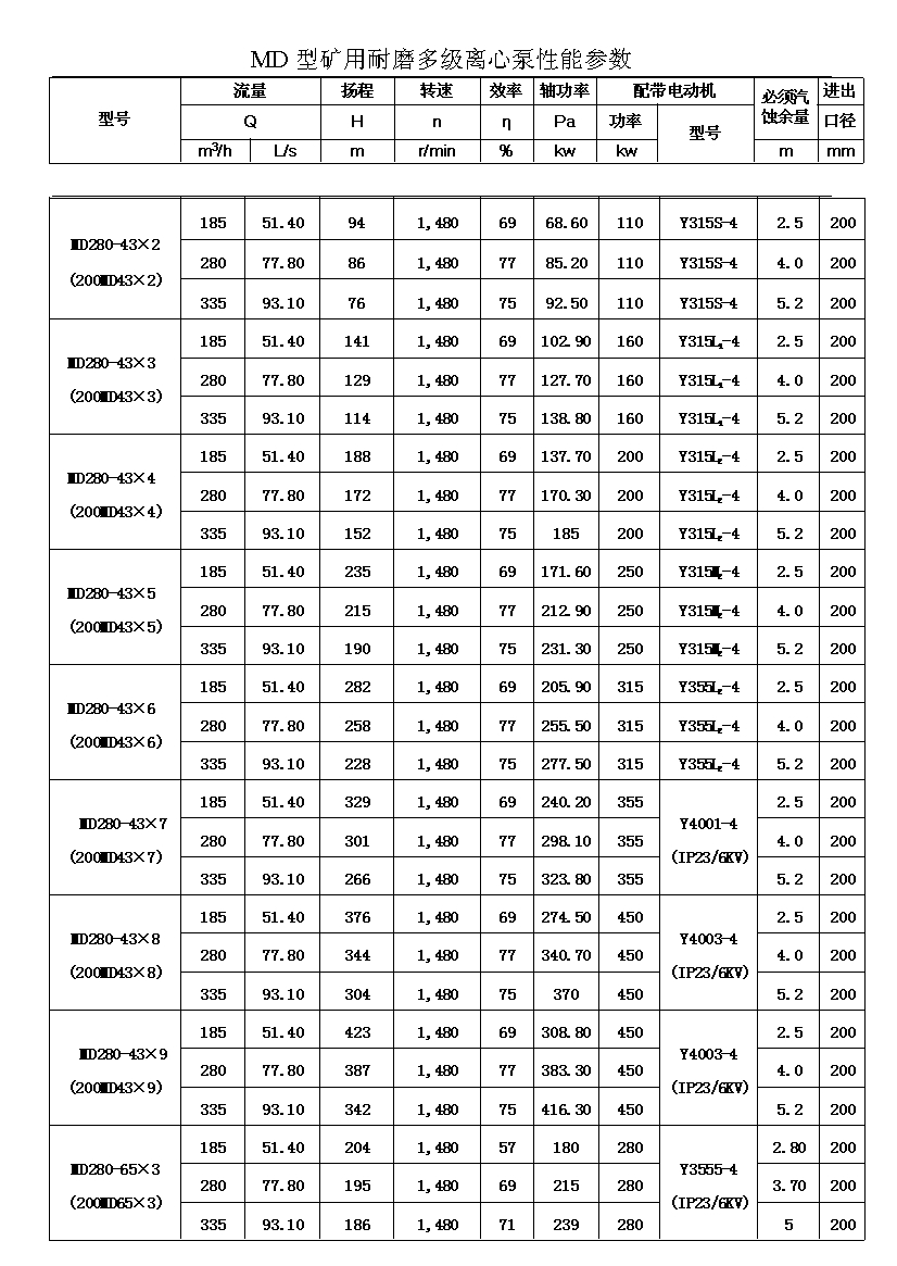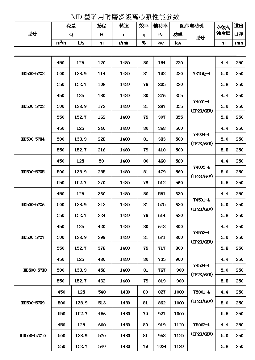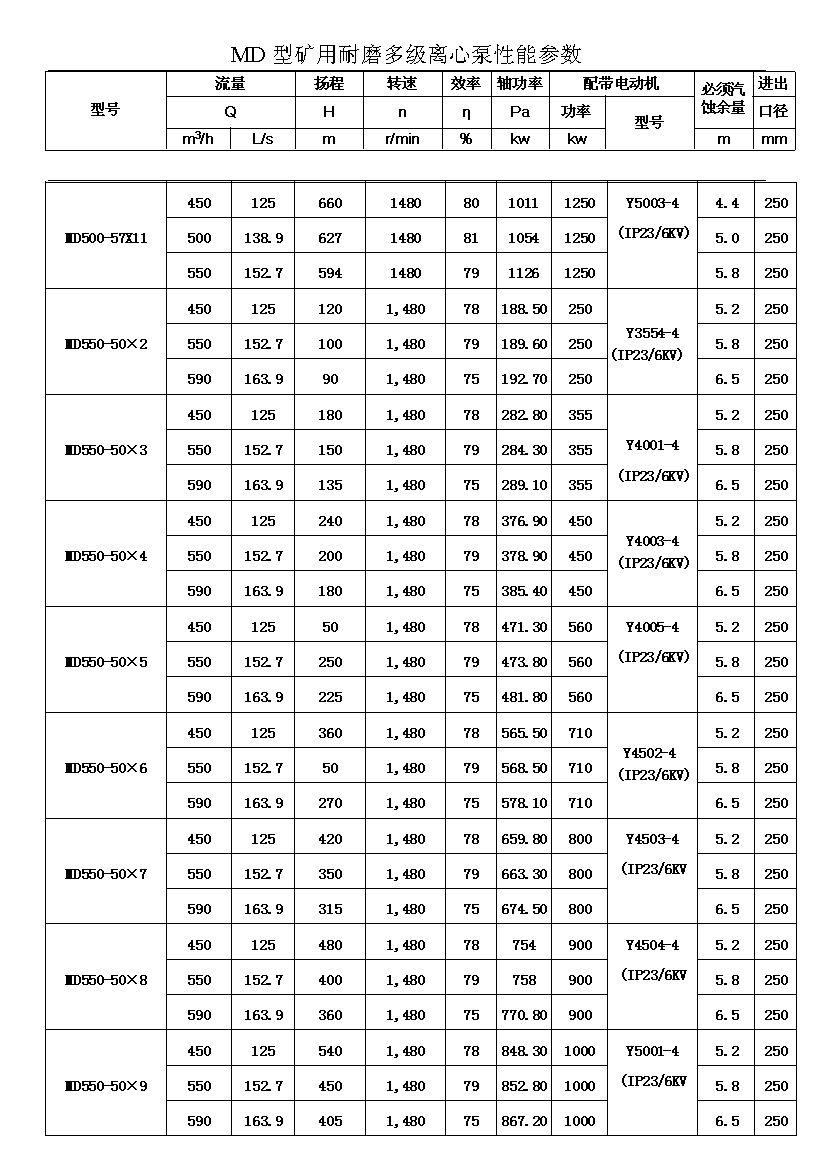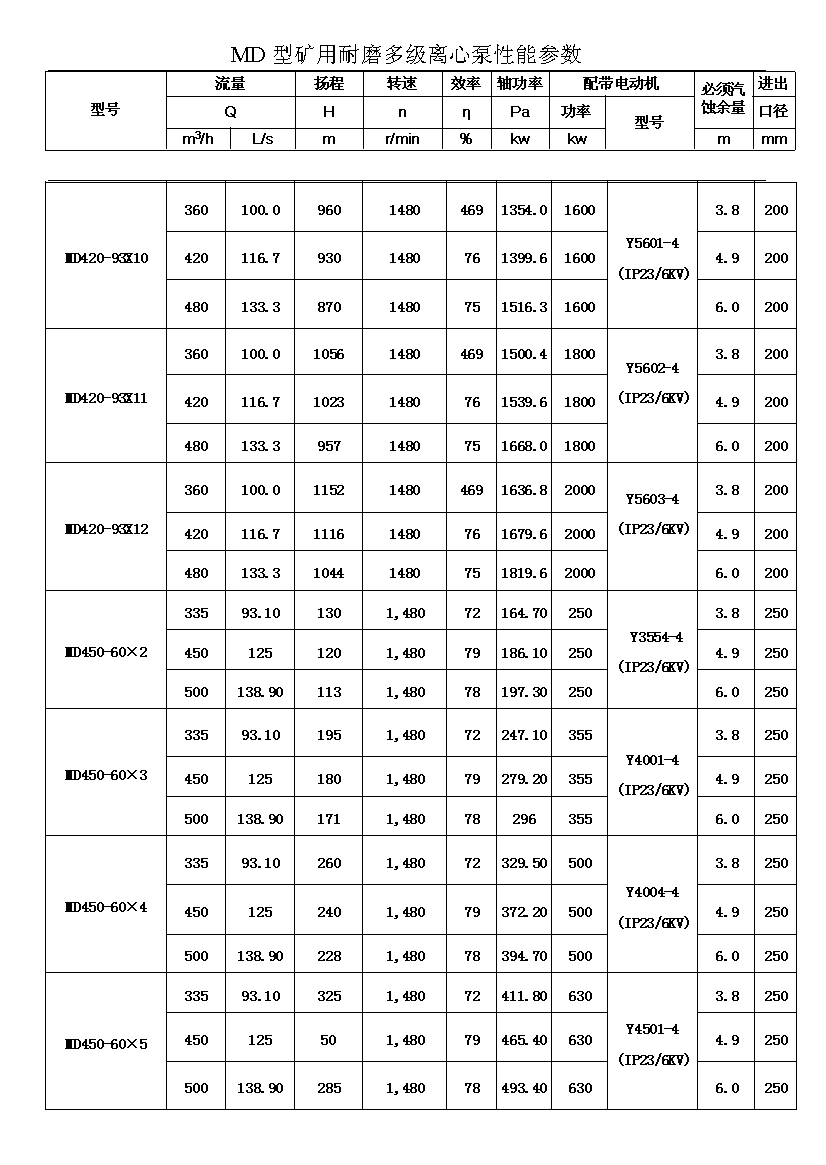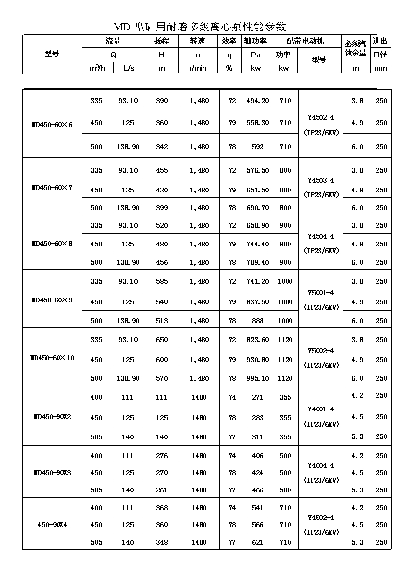 MD型耐磨多级离心泵,是我公司在D型单吸多级清水离心泵的基础上,改造设计的一种耐磨多级离心泵。MD型耐磨多级离心泵,高效节能,耐磨可靠,寿命长, 特别适用于矿山排水,抽送固体颗粒含量不大于1.5%(颗粒直径小于0.5毫米)的矿井水及其他类似液体,液体温度不高于80度。