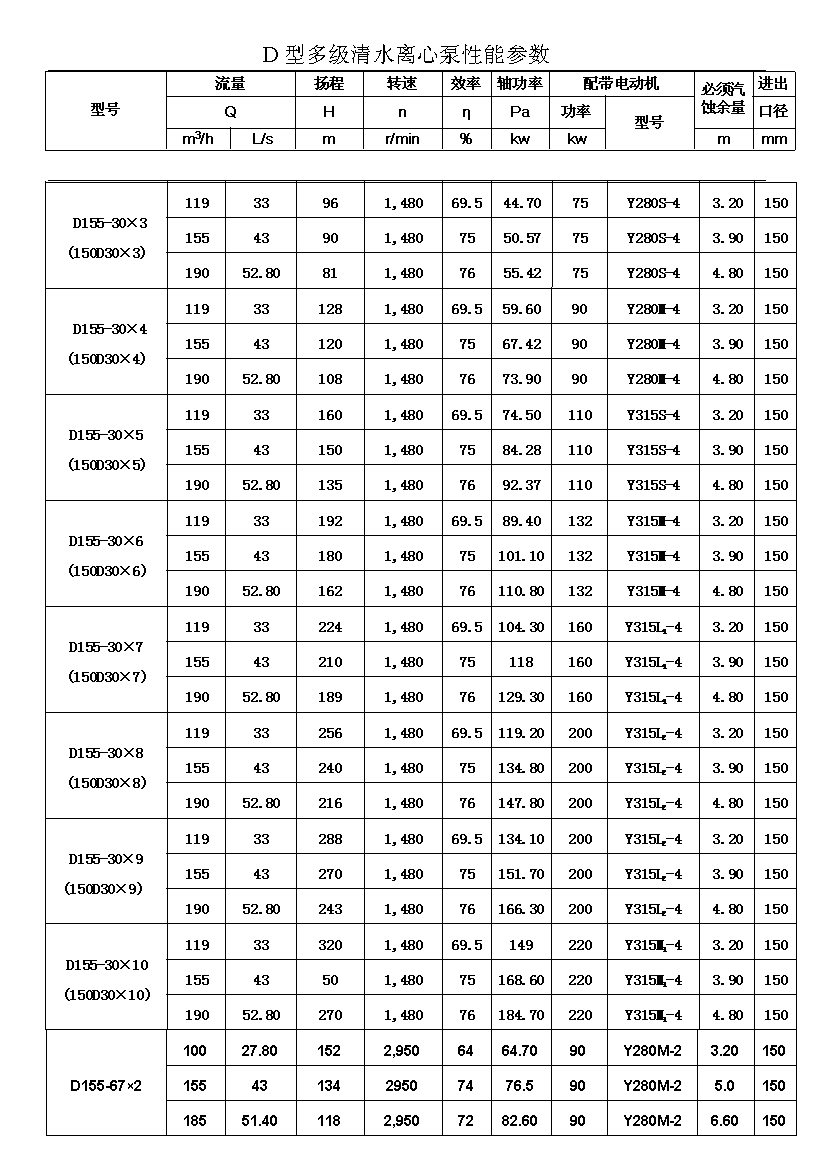 D——表示单吸、多级、节段式离心清水泵。